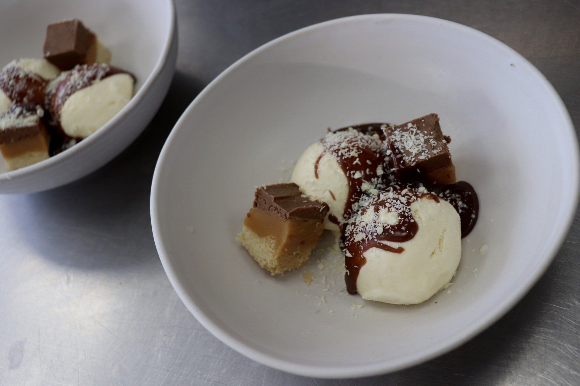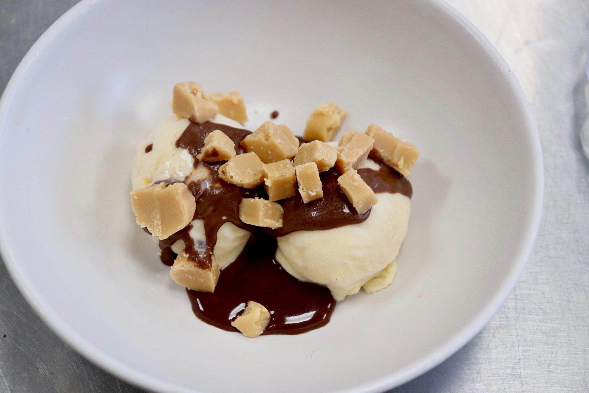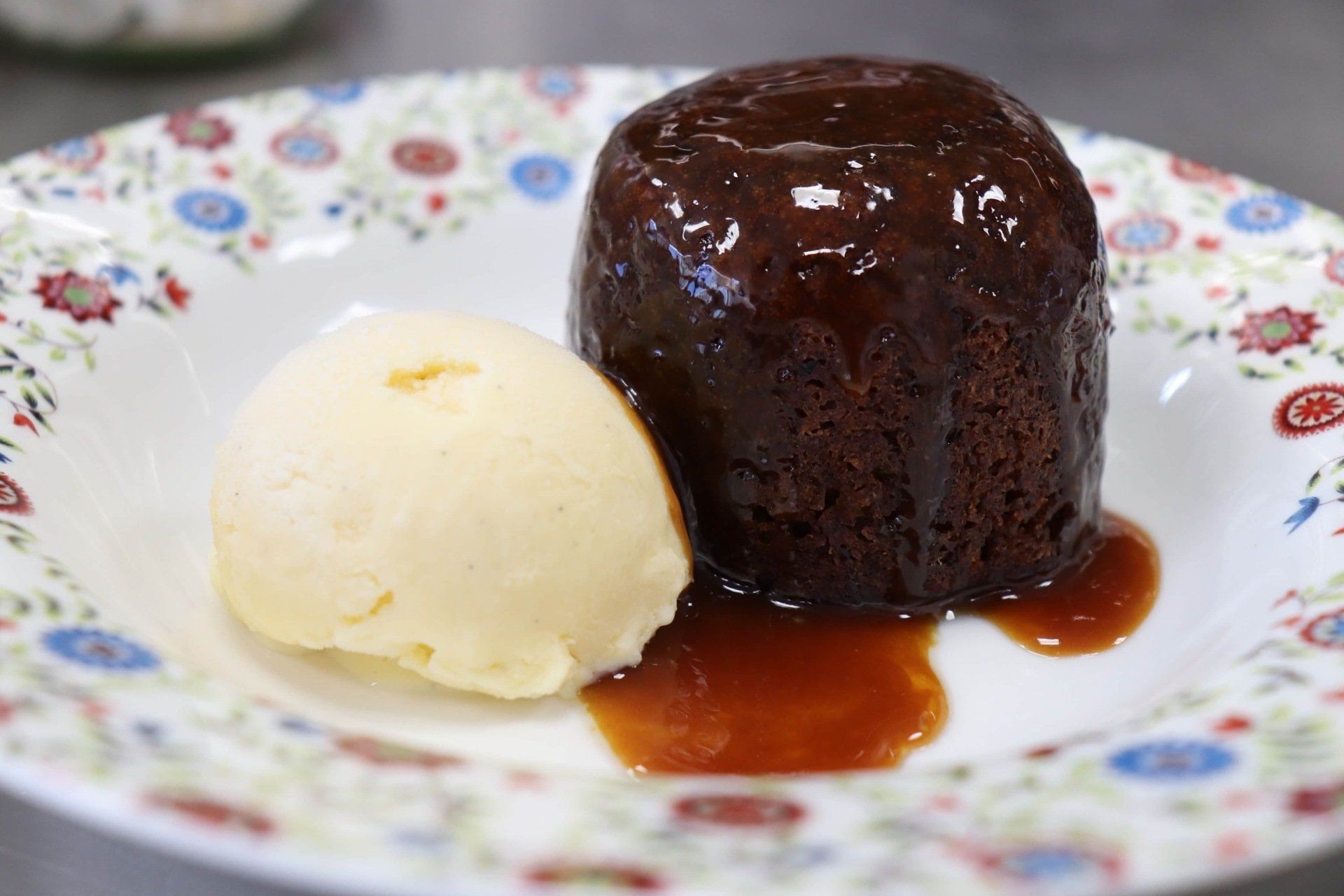 Sticky Toffee pudding with Butterscotch Sauce and Ginger Ice Cream